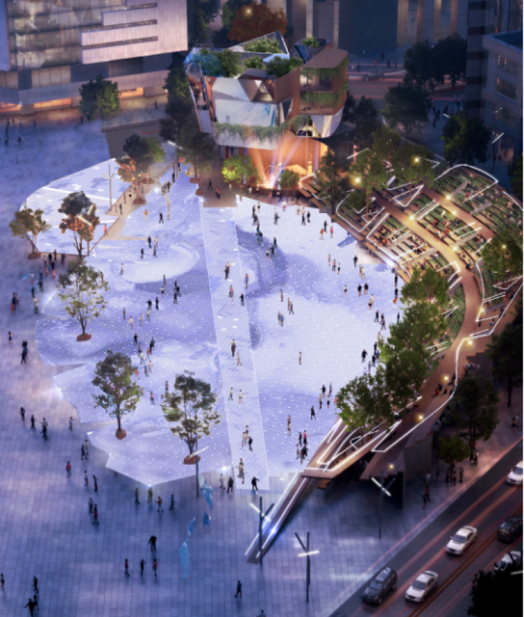 根据规划,将通过不锈钢镜面主体建筑、绿色山丘、珍珠贝母形广场铺地等建筑语汇,将世纪广场打造为城市的“魔力万花筒”。