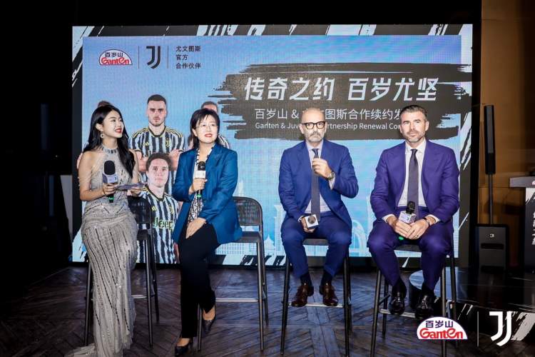 百岁山与足球的相遇更加引人注目。2017年,百岁山首次与意大利豪门尤文图斯签约,成为其官方合作伙伴。这一合作标志着百岁山正式进军足球领域。随着时间的推移,百岁山与尤文图斯的合作越发紧密。2019,尤文图斯签下了著名球星C罗,他的加入为这个合作带来了更多的关注和热度,也再次印证了多年深耕体育圈的百岁山眼光独到的一面。经过多年愉快的合作,在2023年,百岁山选择继续与尤文图斯俱乐部携手,并且举办了盛大的签约仪式。