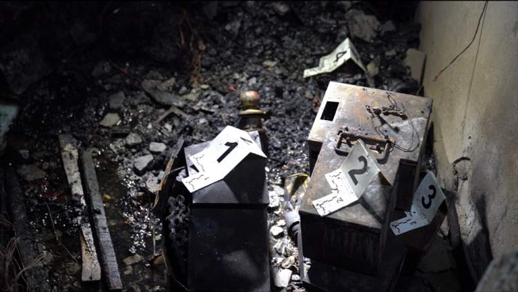 ▲火灾现场发现的电瓶