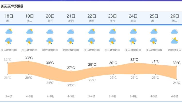 明天,申城仍处在副热带高压边缘,多云天气为主,仍要防范午后的热雷雨天气,预计最高气温可达33℃。