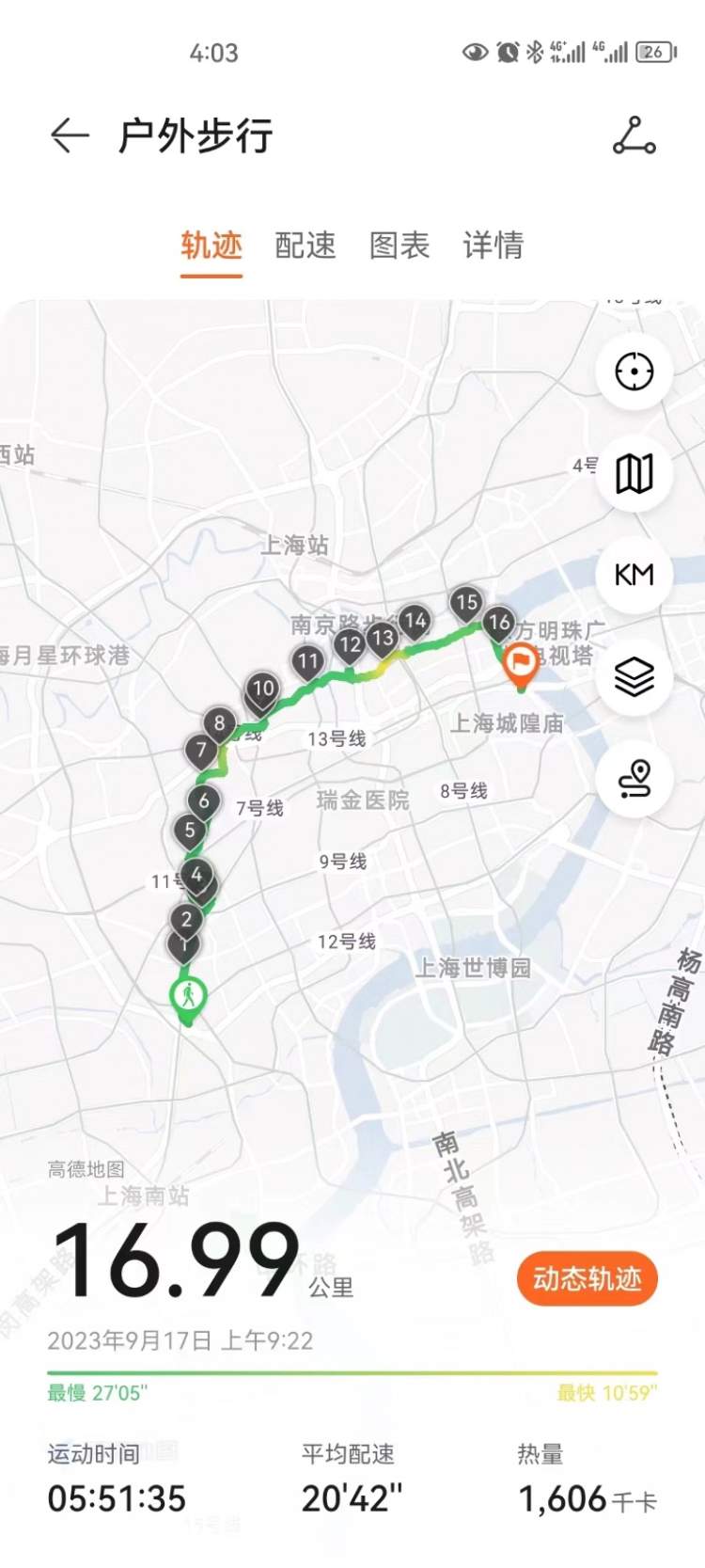 徒步17公里,你会走多久?魔都61岁热爱旅游的阿姨花了6个小时走完全程!