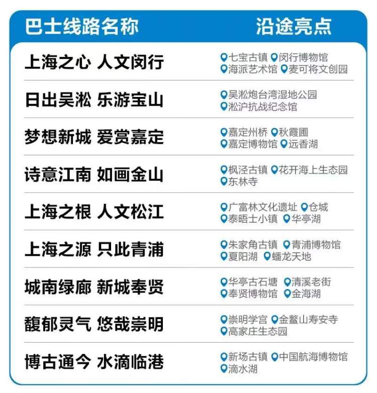 选择巴士旅游线路的市民分别前往宝山、嘉定、崇明等8个郊区,漫步古镇、老街、遗址、博物馆、生态园、文创园,尽情体验秋季上海的郊野美景、美食。