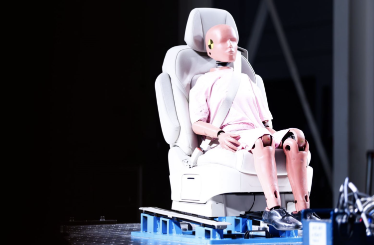 在碰撞事故中,巨大的冲击力会波及座椅骨架和约束系统,如果座垫骨架和安全带固定点发生位移,将导致安全带无法起到保护作用。座椅碰撞约束性试验使用覆盖中国大部分人群的5%、50%、95%三类不同身材比例假人进行测试。测试包含正面、追尾、侧面等各类碰撞工况,前碰加速度最大为56.3g——一般人类能承受的是8g——通过更严苛的考核,确保座椅骨架强度符合更严格的通用汽车全球标准。