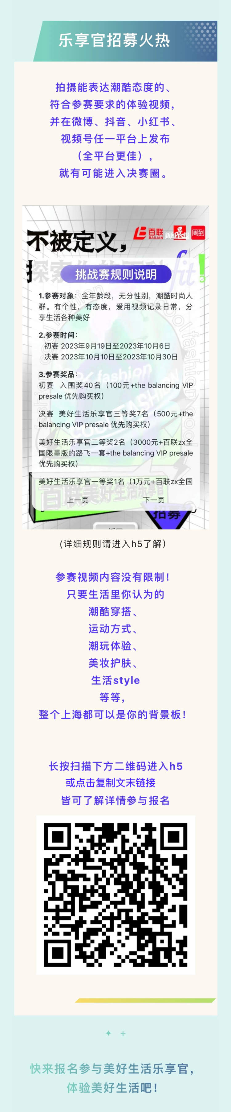 第二季“百联美好生活乐享官”火热报名中,万元大礼等你拿! 邬奕奕 2023-9-19 来源:周到上海 https://e.runshanghai.com/blenofficer/index 来源:周到上海 作者:邬奕奕 赞一个 (0)