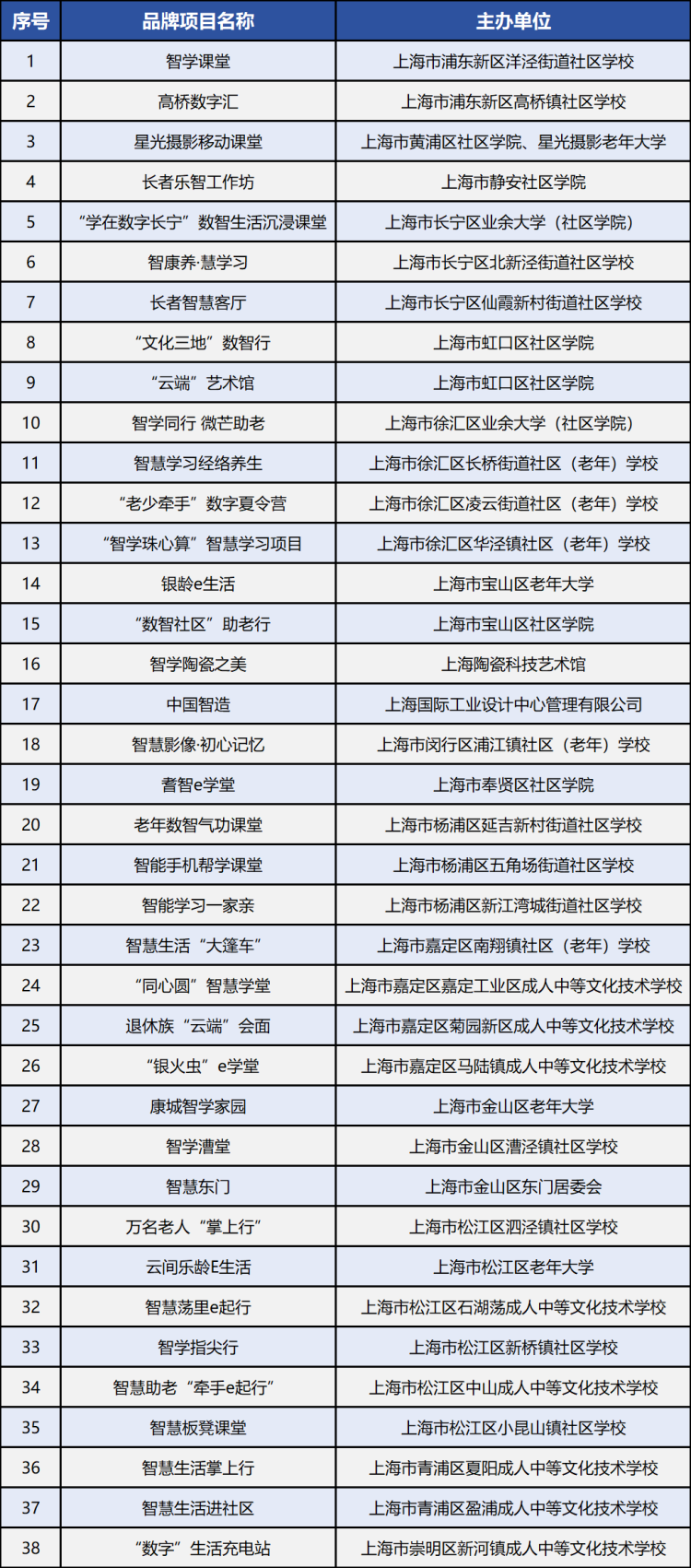 2023年上海市老年智慧学习品牌项目名单