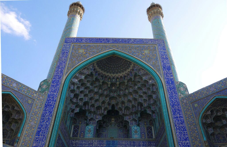 伊斯法罕以 “蓝色”命名的清真寺,就是聚礼清真寺((Masjed-e Jameh )是伊斯法罕市的主要旅游景点,这座清真寺是伊斯兰前萨珊王朝的建筑,占地面积20000平方米)。整座寺庙采用七彩色的彩陶马赛克瓷砖和铭文书法装饰,其中最为突出的就是作为基调的“波斯蓝”,深浅不一的蓝色与彩色马赛克装饰,散发着古老的魅力和独特的气质,时光也仿佛在此倒流了上千年。