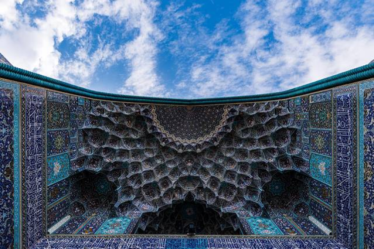 巨大的穹顶在伊斯兰教里面象征着天空,为各式各样的形状,结构,图案,既惊奇又诧异。伊朗清真寺的外观比较朴素,但重视内在的雕饰, “粒子化” 、 “穆克纳斯” 、 “分形”等成为伊朗古代建筑的关键词。穆克纳斯是一种依附于穹顶内表面的三维空间结构,呈现出自然界常见而建筑界罕见的分形(Fractal)结构。
