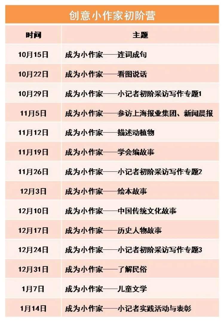 创意小作家可以在导师的指导下,将学到的写作本领现学现用,用文字记录自己的生活,优秀作品推荐发表在《新闻晨报》学记团版面、相关刊物等平台,也有机会获得“新闻晨报杯”上海市中小学生实践征文活动等各类作文活动的推荐。