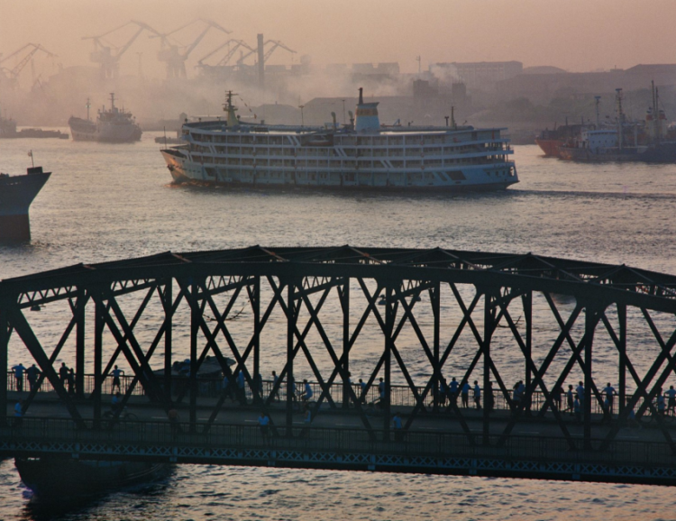 20世纪80年代,外白渡桥与长江客轮(陆杰摄)