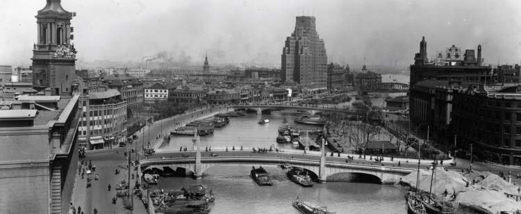 20世纪30年代,苏州河畔河滨大楼眺望黄浦江