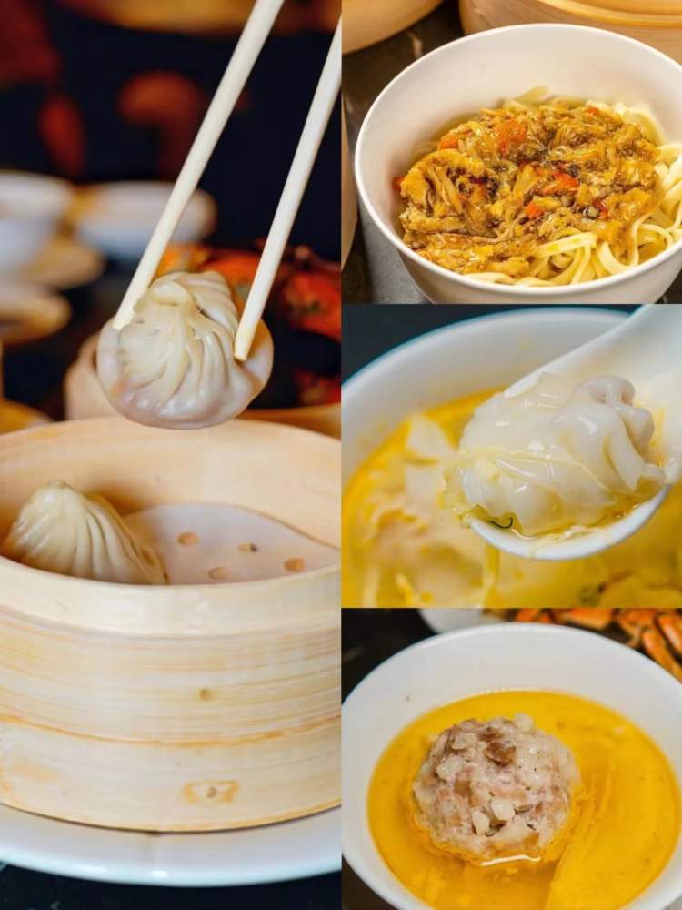 除了完整的大闸蟹外,还有蟹粉狮子头、招牌蟹粉小笼、蟹粉拌面、蟹油小馄饨等经典蟹菜。