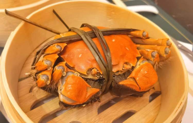 据介绍,这里的每一只蟹都来自阳澄湖水域,招牌水煮大闸蟹、熟醉大闸蟹都是不间断、不限量供应,大厨将新鲜出锅的蟹放置在蒸笼里,食客们拿到桌上还冒着热气。