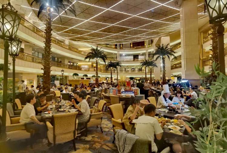 半开放式的室内烧烤区,新鲜的牛羊扒在铁板上滋滋作响;王宝和招牌黄酒浸泡出的熟醉虾、熟醉小海鲜等熟醉美食带来鲜甜滋味;还有国潮风绿豆小冰糕、现烤舒芙蕾、哈根达斯等等甜品,各色水果以及不限量畅饮的品种丰富的酒水饮料也是必不可少。