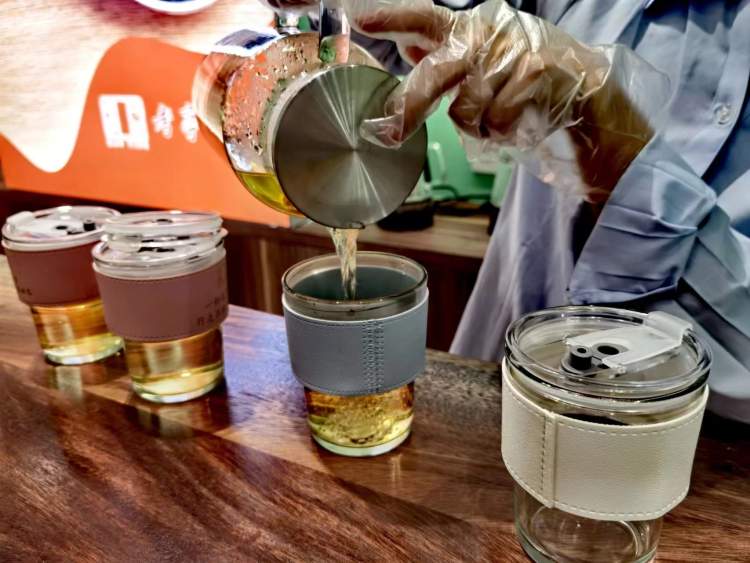 “以前买咖啡只有遇上店庆活动才会限量赠送这种类型的杯子,往往杯子价格还显示为五六十元,没想到这里18元的热茶也送杯子。”购买了一杯新会陈皮水的顾客小陈表示。