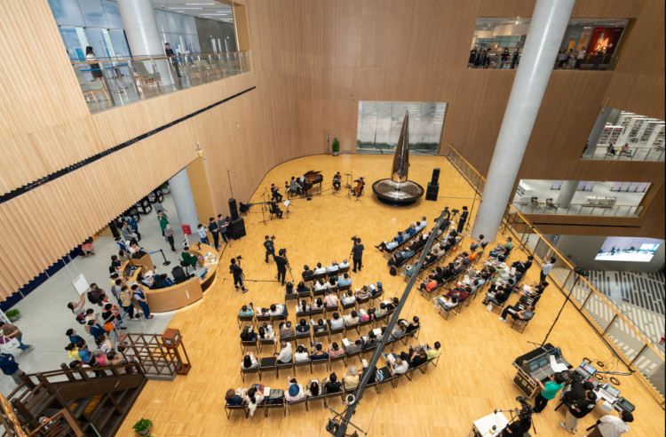 当天下午,《音阅漫步——上海图书馆东馆主题音乐集》音乐会暨专辑全球首发仪式拉开帷幕,青年作曲家罗威携手演奏家们在东馆3楼中庭为读者们奏响悠扬的乐章,呈现一场属于阅读者的音乐会。