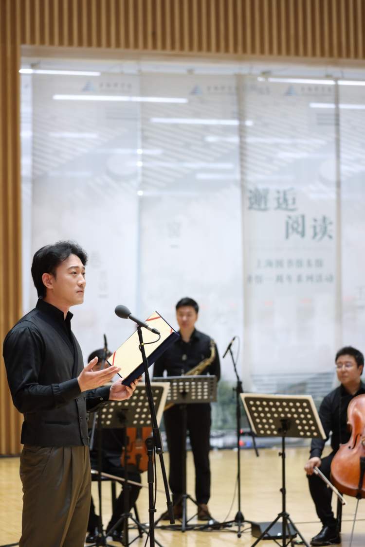 青年导演孙逊带来一首朗诵,伴随着《晚安曲》的乐声,华军、侯颖两位舞者在3楼和1楼中庭翩翩起舞,以整座上图东馆为舞台,读者们移步间也能享受到视听盛宴。音乐会后,演出团队继续为读者们提供阅读陪伴演奏,在“阅读+音乐”的阅读方式中,让读者们获得全新的阅读体验。