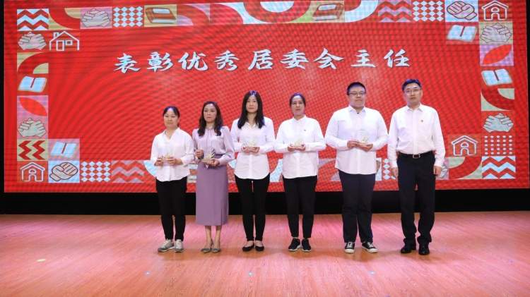 普陀区民政局党组书记、局长张建东为优秀居委会主任颁奖