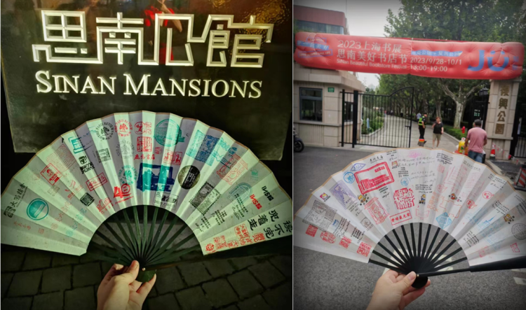 书迷李奎在思南公馆和复兴公园用扇子集章