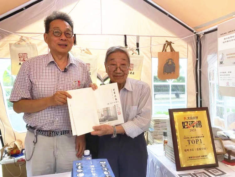 读书乐,首先是淘书乐。这次许多书店人头拥挤,大家都是寻觅好书的淘书者。我在鹿鸣书店为自己近年出的五本书,为读者依次签名,不仅遇到了年过花甲的苏州老乡,还见到好多老读者。其中一位叫徐传元的老先生,他看上去不过花甲之年,其实他己年过九旬;他也是“读书乐”的忠实读者,买了我今年书展期间出的《书香迷离》,并一起合影留念。