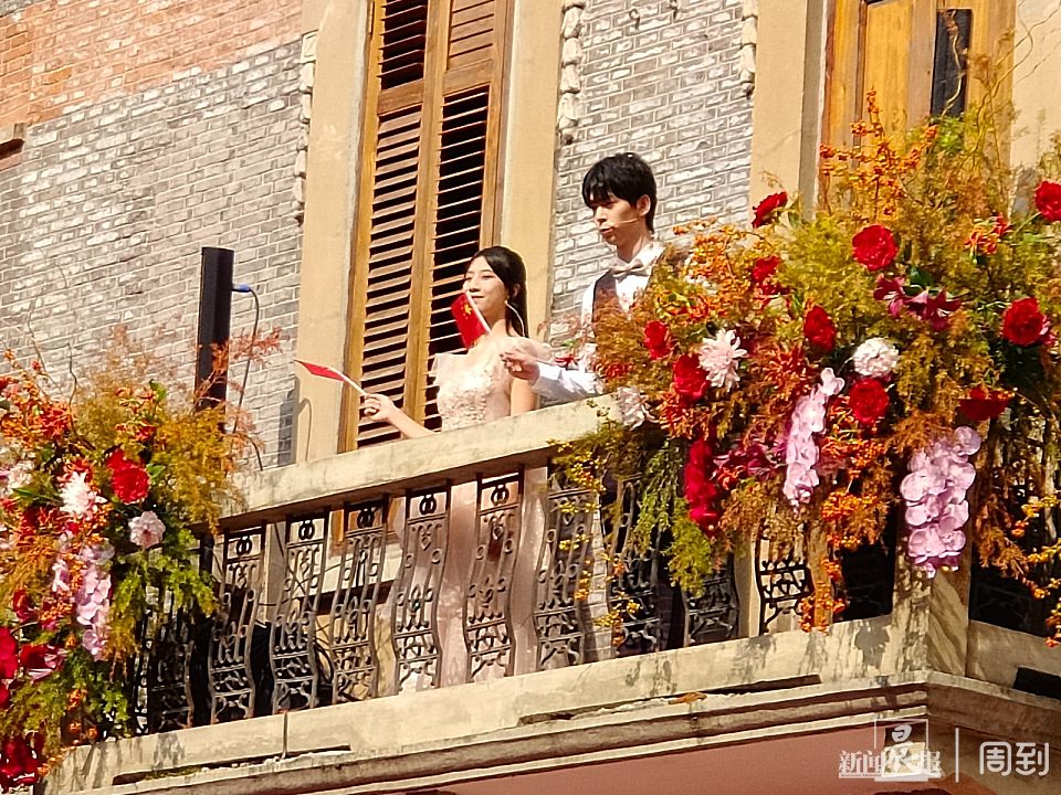 10月1日下午,庄元强早早来到了茂名北路步行街,与上百位市民游客一道,等候观看阳台音乐秀。下午两点,随着街头鼓声的响起,阳台音乐秀准时开启。当天上演的是“张灯结彩,歌唱祖国”沉浸式主题歌会,以经典红色曲目开篇,演员们带来了《我和我的祖国》《追寻》《祖国不会忘记》《灯火里的中国》《星辰大海》《长江之歌》《明天会更好》《歌唱祖国》,用深情的歌唱拨动市民的心弦。