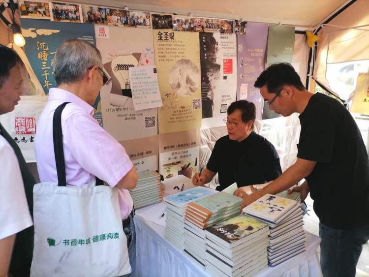 10月1日下午,著名作家赵丽宏在书店节现场为读者签名
