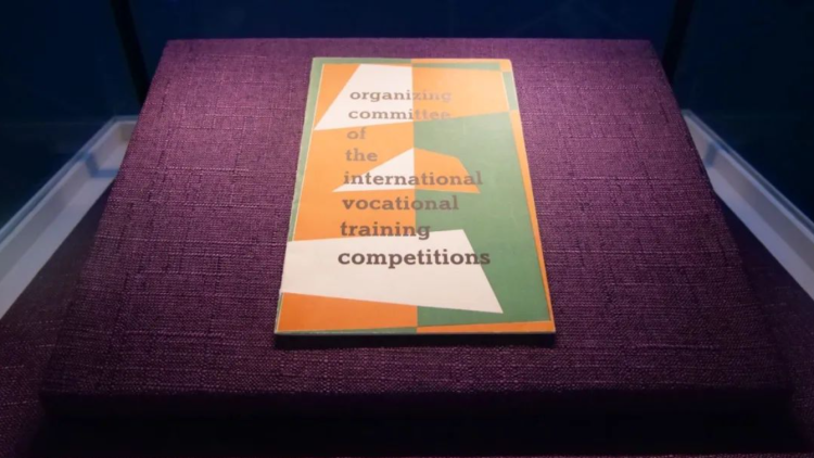 第二展厅的入口,展示着一台绿色的老式打印机。当年正是用这台打字机,世界技能组织创始人阿尔伯特·维达发布了世界技能组织的早期章程。