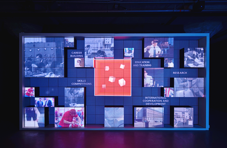 为奖杯奖牌展品组量身定制奖牌秀,虚实结合地展示历史上世界技能获奖者的奖杯及奖牌,驻足观赏实物之精美的同时,亦可借助互动多媒体探寻每一个奖杯奖牌背后的技能故事。