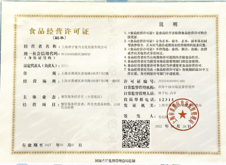 点评网上放的是唐宁书店(上海复兴店)的食品经营许可证