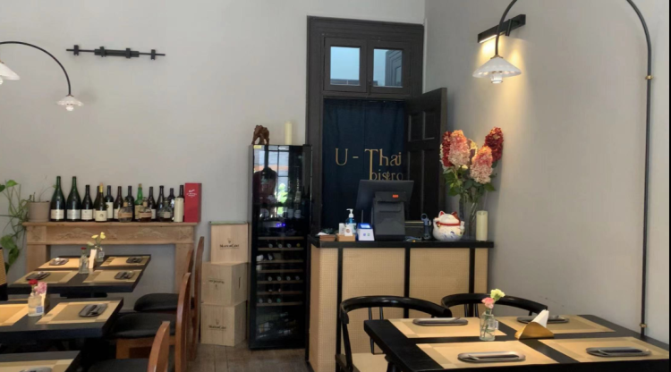 记者发现,目前书店一楼入驻有Manner咖啡和一家名为U-thai bistro的泰式小酒馆,该餐厅中午和晚上都可以用餐,而晚上人气更旺一些,以年轻人喝酒聊天为主。夜幕降临,不少年轻人坐在昔日的石库门天井区域用餐,一楼还有不少堆积的酒瓶。