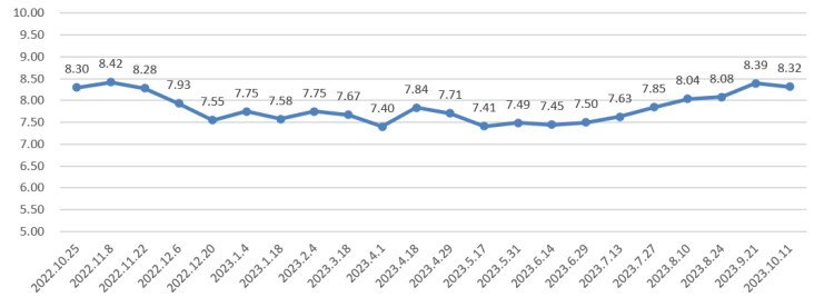 自10月11日零时起,92号汽油将下调为8.32元/升,95号汽油下调为8.86元/升,0号柴油下调为8.03元/升。