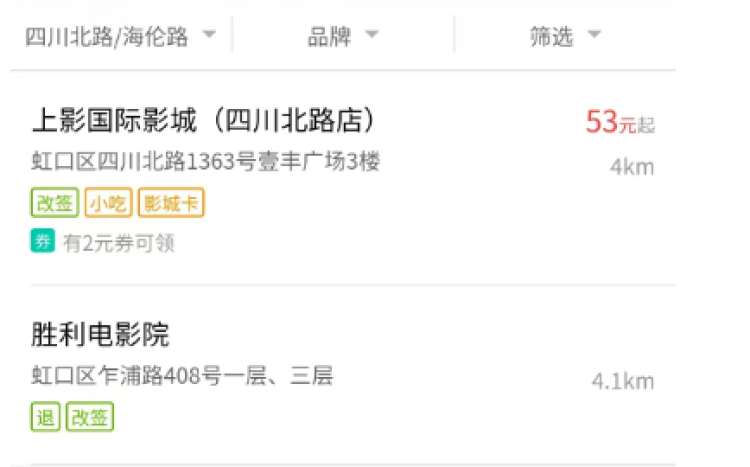 胜利电影院已经出现在淘票票、猫眼电影等平台