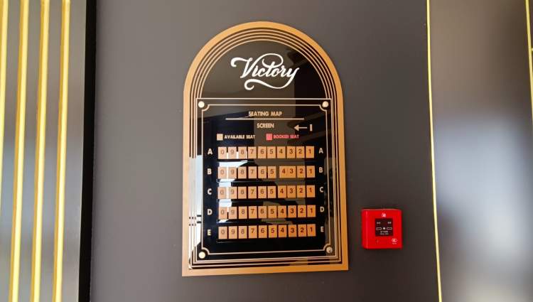 按照指示牌显示,放映厅一共有50个座位,而没有影片放映时,这些座椅可以伸缩折叠起来,形成一个多功能的小剧场。