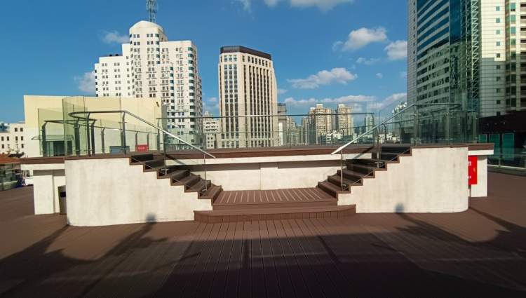 摄影师徐志东是虹口人,从小生活在海伦路,他曾经长期关注胜利电影院,从上世纪90年代一直拍摄到现在,镜头跨越30多年。作为老虹口,徐志东一直希望能在第一时间走进电影院,10月11日当天,他受邀来到影院,在工作人员的引导下全程参观了电影院内部。站在影院楼顶平台,他眺望四周,看到了之前曾借住过的久耕里,并指给记者看大致的位置: