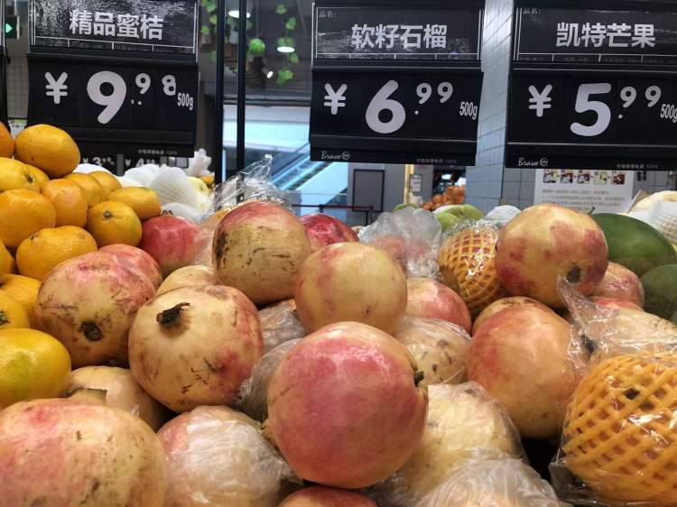 在一家超市,外观卖相不错的软籽石榴6.99元一斤。销售人员说,最近买石榴的顾客不少。