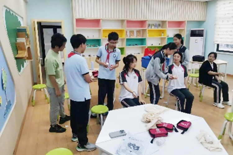 曹杨第二中学一直以来都将学生的安全放在首位,始终坚持“以人为本,生命至上”的理念。学校与普陀区中心医院开展共建,邀请红十字会、医院的专业人员来校授课,确保学生们学习到最权威、最实用的急救培训。同时,学校也积极安排教师参与急救考证,以提高校内急救水平。