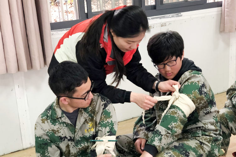 城桥中学高一新生在东平森林青少年活动基地举行军训期间,开展了各项急救技能培训和考核,让每个学生逐个过关。学生们从一知半解到熟练掌握,提升了应急救护能力。