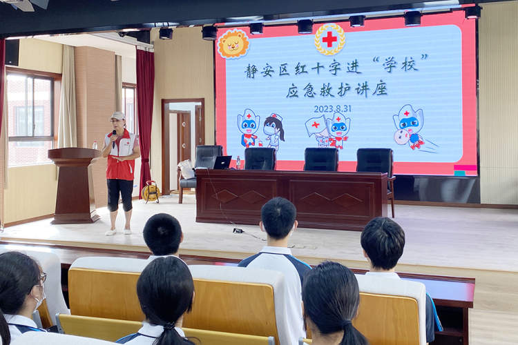 日前,静安区红十字会在向东中学举行了一场应急救护培训讲座活动,为160名高一年级新生开展安全教育。