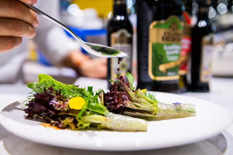 今年的翡丽百瑞展台格外不同,一颗真正的橄榄树分外抢眼,加上一旁的生产设备模型,共同展示了从收获油橄榄到橄榄油装瓶的全生产流程,以及如何用特级初榨橄榄油和摩德纳香脂醋调配成油醋汁,制作一份健康美味的蔬菜色拉。