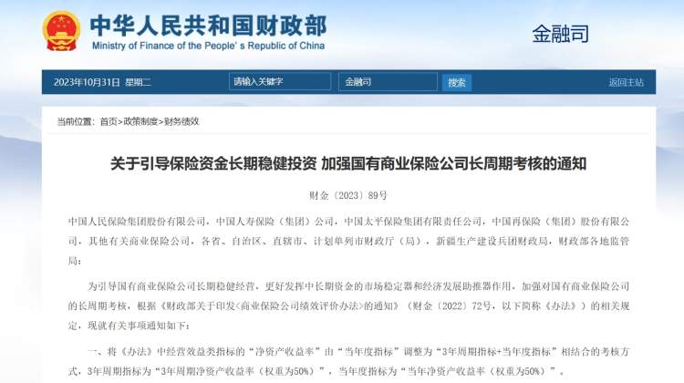考核周期的变更,为保险资金入市打开了通道。10月30日,来自财政部网站的公告显示,为引导国有商业保险公司长期稳健经营,更好发挥中长期资金的市场稳定器和经济发展助推器作用,加强对国有商业保险公司的长周期考核,将保险资金的考核周期变长。对此,多位专业人士指出,此举有利于保险资金入市。