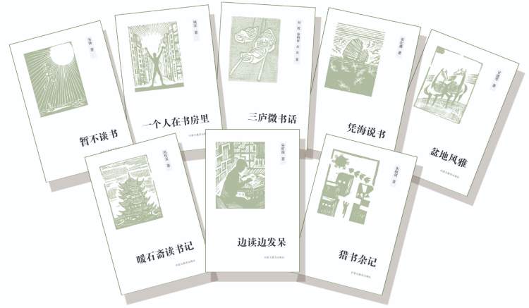 《纸阅读文库》原创随笔系列.第五辑作品,左上角为韦泱的《暂不谈书》