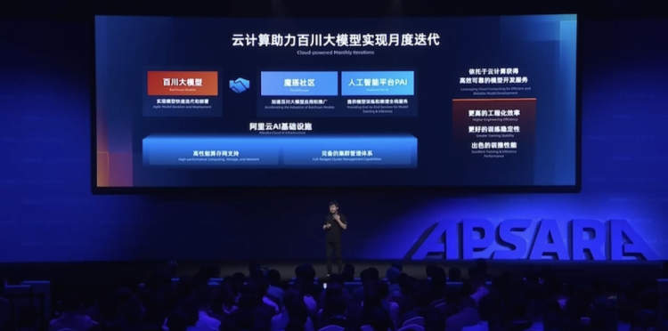 百川创始人王小川说,模型的快速迭代和部署离不开云计算,百川智能和阿里云作为紧密的合作伙伴,在模型预训练和模型部署等方面进行了深入合作。在双方的共同努力下,百川很好地完成了千卡大模型训练任务,有效降低了模型推理成本,提升了模型部署效率。