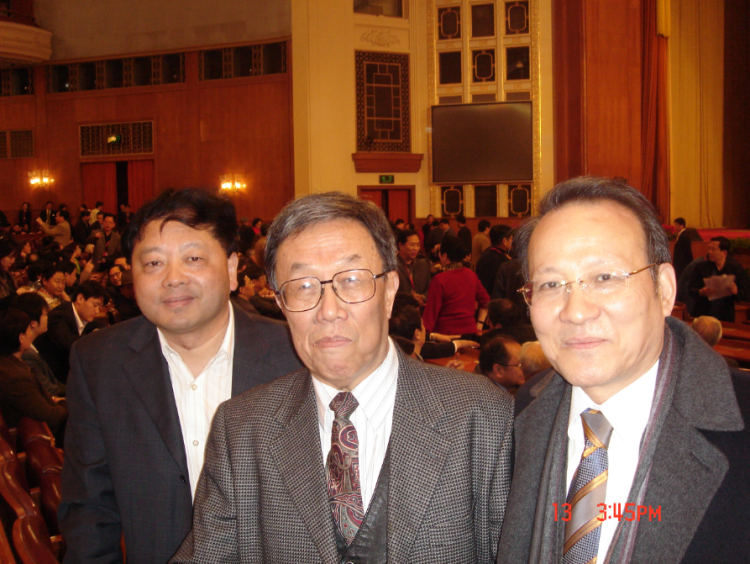 毛时安与编辑家郏宗培(左)作家王蒙(中)