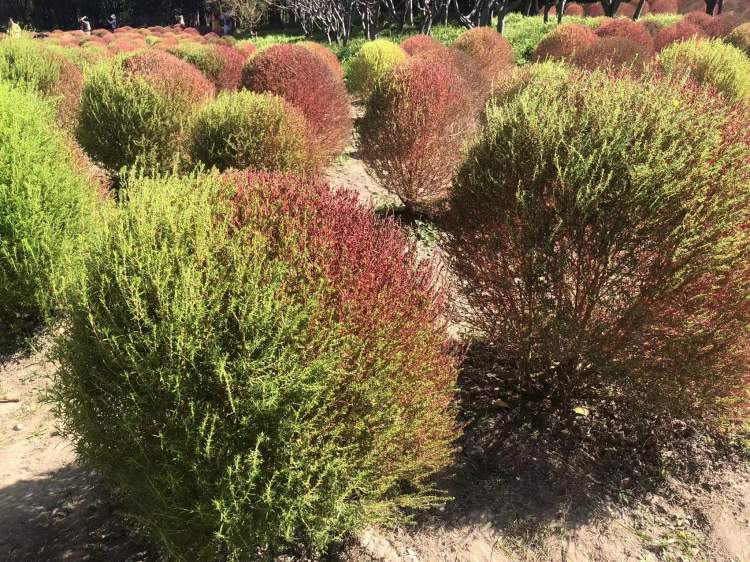 地肤俗称“扫帚草”,早在2015年以前,红叶地肤就在日本国营海滨公园进入大众视野,每年吸引大量游客慕名前往。多年前,世纪公园率先引进红叶地肤种植,经过多年栽培,逐步摸索出种植经验,观赏效果渐佳。如今,花开海上生态园等处也有大规模地肤种植。