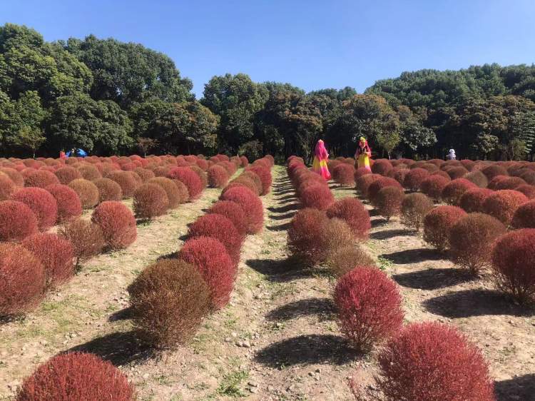 植物界的又一个网红——红叶地肤变色了。世纪公园的花田里,阿姨们总是能踩准植物开花、变色的节拍,又组团来拍照了。今年,世纪公园对红叶地肤进行了修剪,使其造型更加圆滚滚。