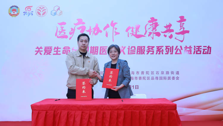 徐岚、沈馗上台签署了共建协议书。品尊国际居民区、普陀区妇婴保健院构建形成“泉心守护 健康品尊”健康卫生共同体,双方以共建共享为基础,积极拓展基层党组织功能。