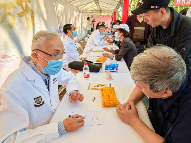 “先生,侬哪里不好?”“我夜里困不着、有时心跳得快……”“侬不要急,我来帮侬把个脉。”随着秋冬季的来临,人体的免疫力也随之减弱,此时,滋补身体正当季。11月3日,上海雷允上北区药业股份有限公司举办的2023虹口膏方节在鲁迅公园南广场举行,上海市部分名中医、主任医师张存钧、李祥云等在活动现场,为众多注重秋冬养生的市民义诊把脉,“听听名医的讲解,今冬‘养生大计’就心定了。”一些市民从顾村、中原等地远道而来,与名中医来了个近距离接触。