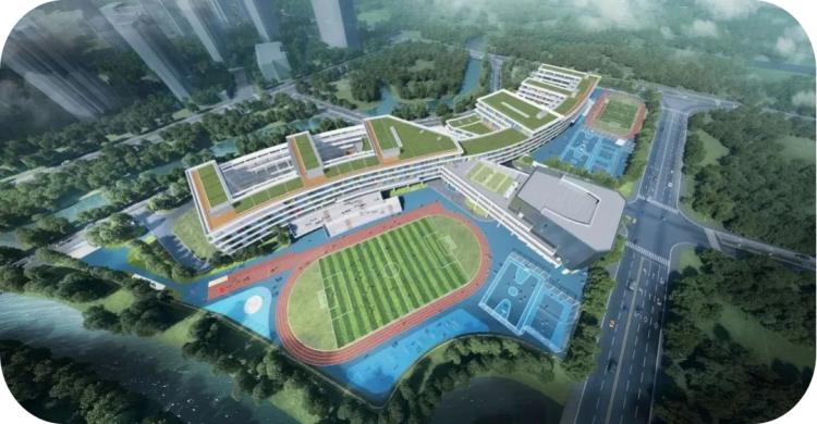 学校建筑以“面向未来的新型学习空间”和“学校就是一本教科书”的教育理念来高标准设计建造,为学校办学赋予无限想象和创造的可能。