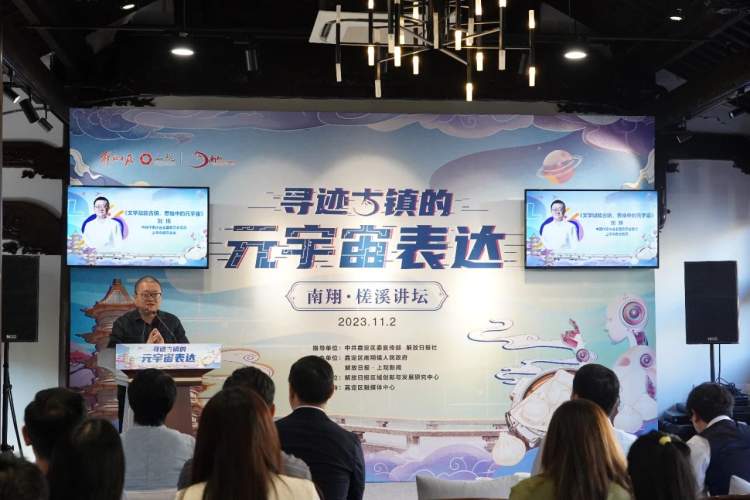 当元宇宙遇上古镇文化,会迸发出怎样的火花?11月2日下午,作为第十七届上海南翔小笼文化展的收官活动之一,第三届南翔·槎溪讲坛以“寻迹古镇的元宇宙表达”为主题,在我嘉书房·名士居举办,来自元宇宙领域的高校、行业专家齐聚一堂作交流分享。