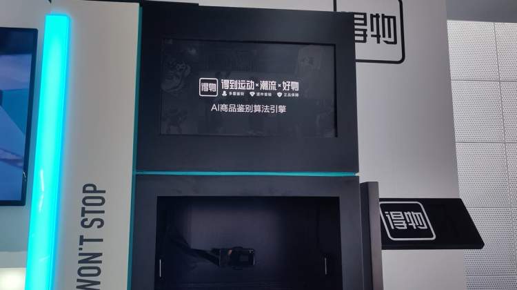 得物为上海馆带来他们进博首发产品——得物人工智能查验鉴别设备。通过自研的硬件集成,快速完成商品多角度的信息采集和存储,利用AI计算引擎鉴定商品真伪,效率是普通人工鉴别的四倍以上。