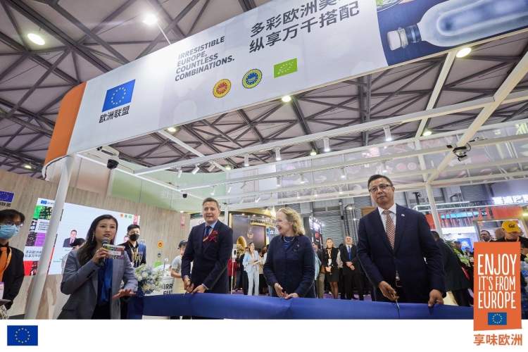 如今,消费者越发注重食品的安全性、原产地。 2020年,欧盟和中国签署了双边协议,约有200个来自欧洲和中国的地理标志(GIs)农产品名称受到协议保护,以防止假冒和仿制。在此背景下,今年的欧盟馆在上海环球食品展(FHC)上,着重呈现了“地理标志产品”、“有机”。